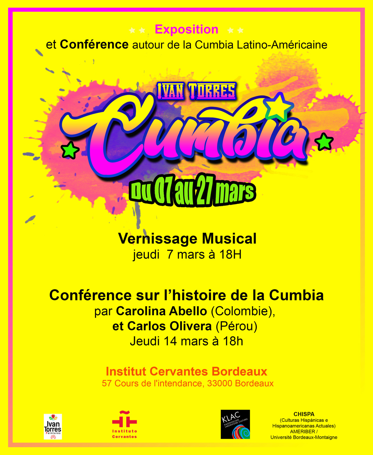 Venez découvrir, écouter et partager la Cumbia lors du vernissage musical le jeudi 7 mars à 18h à l’Institut Cervantes. Au son des trois plus talentueux cumbieros de Bordeaux, Gloria Aravena (#Chili), Jano Arias (#Mexique) et César-Octavio Santa Cruz (#Pérou), du Groupe "Color Canela".