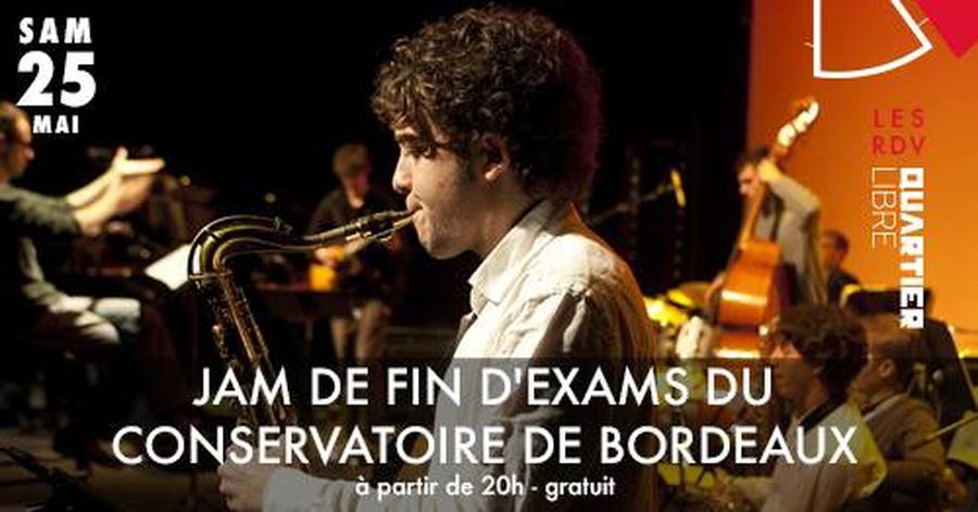 Jam session de fin d'examens du département jazz et musiques actuelles du conservatoire de Bordeaux. Après 3 jours de concerts au Rocher de Palmer, le Département jazz/MAA du conservatoire vient fêter la fin des examens au Quartier libre pour une jam session endiablée animée par les membres du Jury.