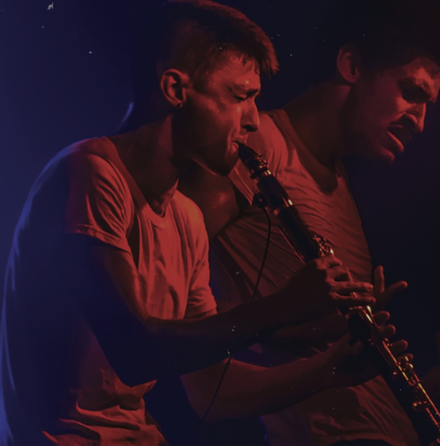 Avec le hip-hop en fil d’ariane, Titouan & Alex viennent nous conter leur monde, ses carcans, et ses possibles. Leurs souffles et leurs corps sont les deux facettes d’une même colère, d’un même espoir. Durant ce voyage s‘invite un jazz teinté de couleurs africaines, balkaniques et orientales. La flûte traversière flirtant avec le beatbox et le timbre feutré de la clarinette s'accordent aux rythmes des machines. Textes et corps s'unissent pour nous délivrer une émotion brute.