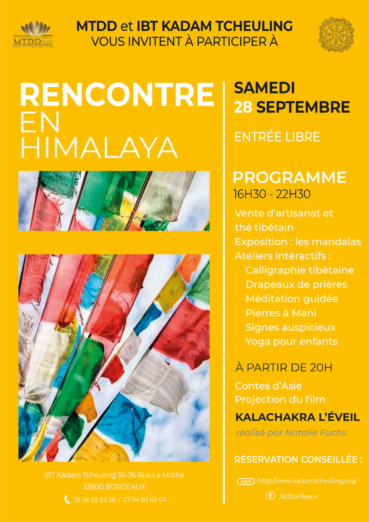 MTDD et l'institut Kadam Tcheuling de Bordeaux vous invite à RENCONTRE EN HIMALAYA ce samedi 28 septembre.
