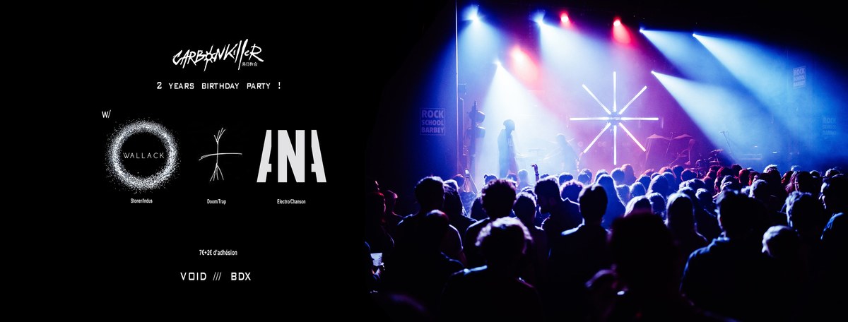 C'est l'occasion pour le groupe bordelais de saisir la carte blanche offerte par le VOID // BDX pour vous proposer une soirée quelque peu non-conventionnelle : aucune cohésion dans le style musical de la programmation mais juste des univers musicaux et artistiques qui parlent aux membres du groupe et qui n'ont pas grand chose à voir avec la synthwave de Carbon Killer...