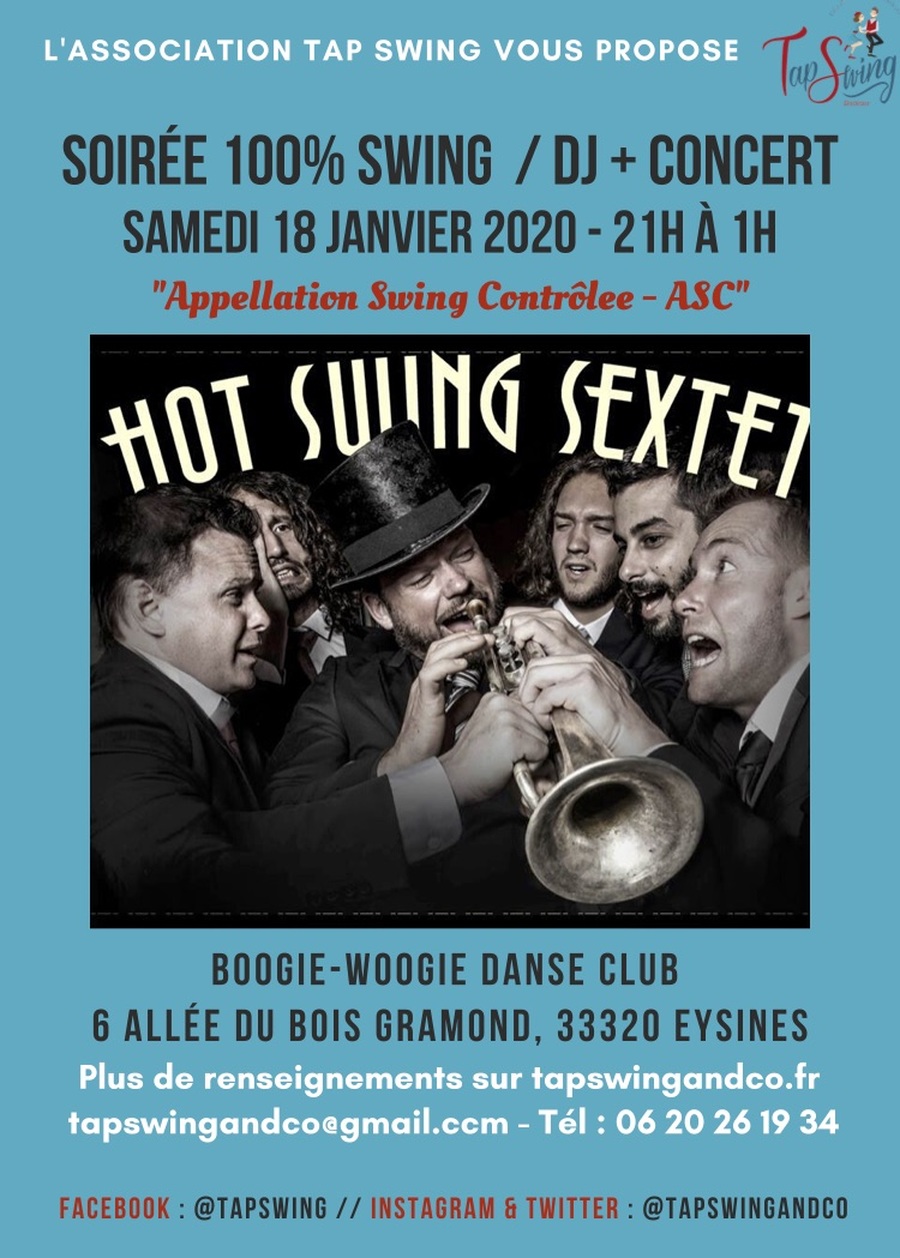 Soirée de 21h à 1H avec les HOT SWING SEXTET