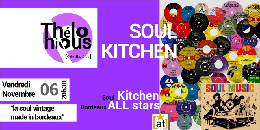 Keep the faith and put on your dancing shoes... SOUL KITCHEN, c’est la sensation soul vintage de la scène bordelaise. Le SOUL KITCHEN groove, c’est avant tout une section rythmique millimétrée, un pupitre de cuivres affûtés, et des arrangements raffinés au service de compositions originales. La recette SOUL KITCHEN : musique inspirée de la soul et du rhythm and blues des années 60 relevés aux épices du gospel et du rock.