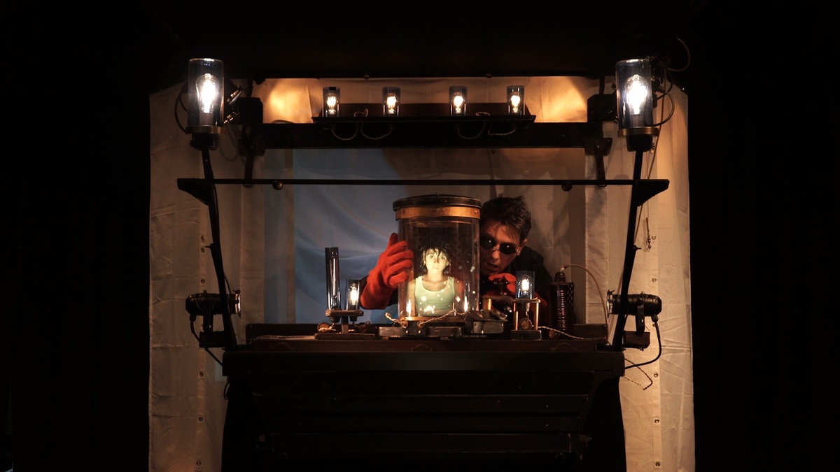 Au centre, un montreur d’étranges « vues animées » dans un entresort, qui réunit science et poésie. Une lanterne magique 2.0 qui questionne notre rapport aux écrans en usant d’étrangetés, de non-sens, de contre-sens visuels, … et qui permet d’interroger nos modes de communications, l’enfermement que peuvent susciter les écrans et la fracture numérique.