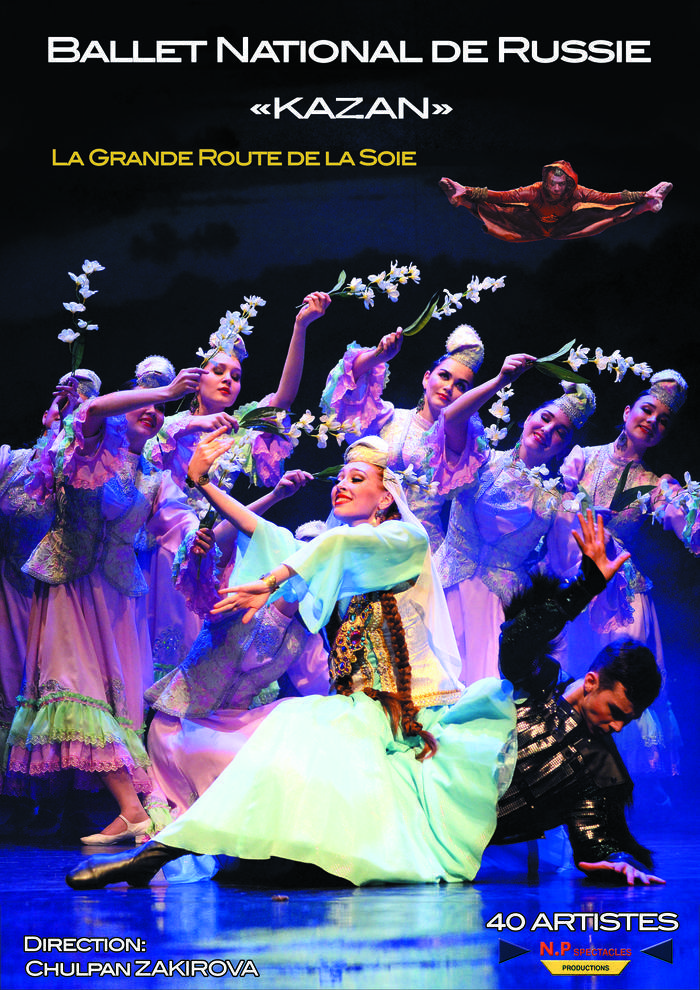 La soie, il en sera question dans ce nouveau spectacle puisque c’est autour de « La grande route de la soie » qu’il est construit. C’est l’occasion de faire connaissance avec l’histoire de ce périple de la soie qui traversait tous les pays d’Asie orientale et centrale. Et l’on traverse tous ces pays, de la chine à l’Egypte en passant par le Caucase, la Bulgarie, Venise… à la rencontre de leurs légendes, leurs coutumes, leur culture, leurs danses et musiques. Le spectateur est embarqué dans ce voyage qui traverse pays et époques. De partout, dans les nombreux pays où cet ensemble se produit, l’accueil est enthousiaste, le public est partagé entre émotion et admiration. La presse est unanime pour saluer ce triomphe et souligne le caractère unique et exceptionnel du Ballet National de Kazan. Un spectacle pour toute la famille.