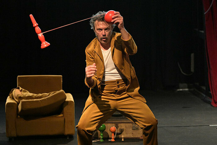 Un clown jongleur aussi drôle qu’attendrissant interprété par Bertrand Mazere, formé à l’École du Cirque Éclair de Bordeaux à la fin des années 90. Le comédien a depuis roulé sa bosse et peaufiné son art de rue dans une ribambelle de festivals, maîtrisant à la perfection ses interactions silencieuses et burlesques avec un public conquis. Fantaisie, poésie, loufoquerie font bon ménage dans ce spectacle petit format qui suscite de grandes émotions.