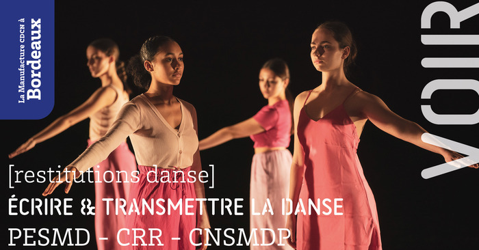 Écrire et transmettre la danse : www.lamanufacture-cdcn.org/spectacles/ecrire-et-transmettre-la-danse-restitutions-de-projets-pedagogiques-ven-16-sam-17-fevrier-2024-a-la-manufacture-bordeaux/?portfolioCats=29
