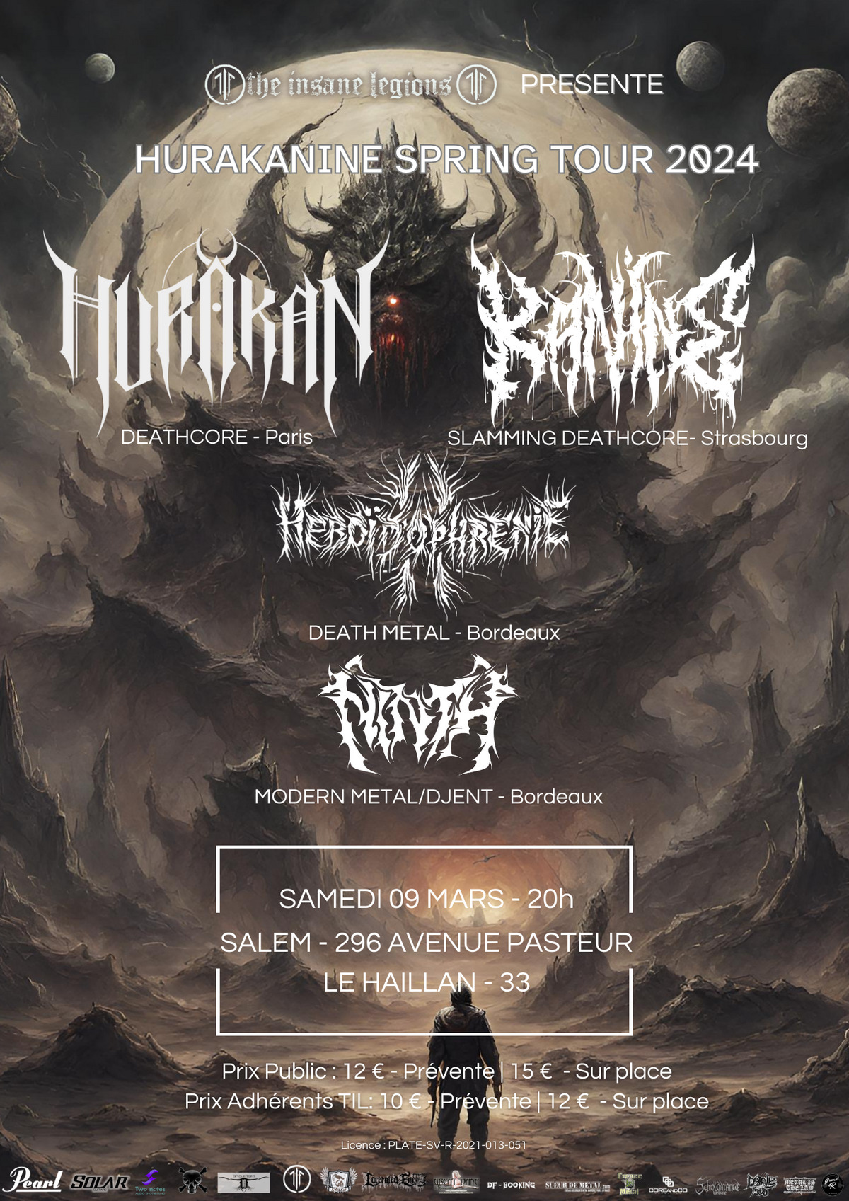 L'association The Insane Legions a le plaisir de vous annoncer sa prochaine soirée Death Metal pour le HURAKANINE TOUR qui aura lieu le samedi 9 mars 2024 à Salem avec KANINE, HURAKAN, HÉBOÏDOPHRÉNIE et NINTH !!!
