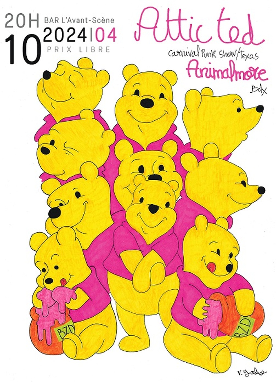 Freak show apocalyptique texan, country gothique, new wave crépusculaire, kermesse post punk ... Attic Ted a écumé les routes du monde entier, le projet centré autour de Grady Roper développe un style unique basé sur une orchestration des plus inattendues : orgue, Casio, clarinette, percussions, Kaoss Pad ou encore une guitare au son si sale que les groupes de garage n’ont plus qu’à aller se cacher. ça sent toujours autant la gnôle et la débauche.