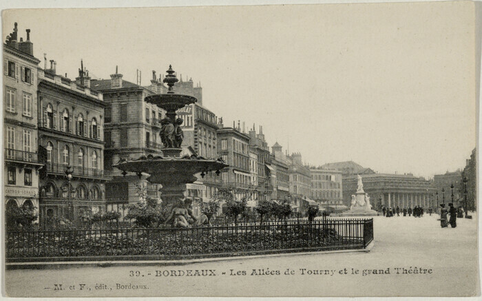 La résidence de création de la Compagnie éclats aux Archives métropolitaines est l’occasion de présenter une sélection de documents retraçant l’histoire des deux grandes fontaines qui ornaient autrefois les allées de Tourny à Bordeaux. Elles sont l’œuvre du sculpteur de renom Mathurin Moreau (1822-1912) et sont installées en 1857 aux extrémités de la place. Démontées en 1961, tout comme le monument Gambetta, à la suite du projet de réaménagement de la place et de la construction du parking souterrain, chacune d’elles va connaître une étonnante destinée entre Soulac et Québec où l’on peut les admirer encore aujourd’hui.