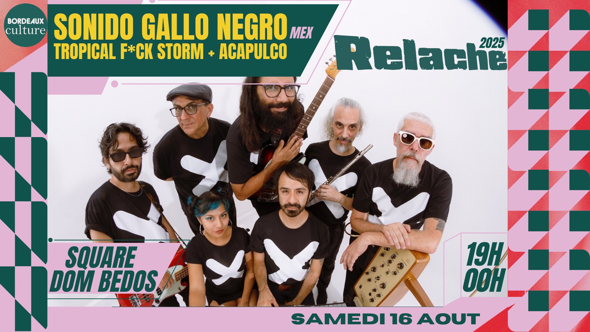 Sonido Gallo Negro est un groupe mexicain de cumbia et de fusion originaire de Mexico, actif depuis 2010. Leur style distinctif s’inspire fortement de la cumbia psychédélique péruvienne, enrichi par des sonorités des années 70 et une esthétique visuelle psychédélique marquée. Formé par des membres issus de groupes de surf rock, le collectif mêle la musique traditionnelle à des éléments de rock et d’électronique, créant une atmosphère sonore unique sur la scène musicale latino-américaine.