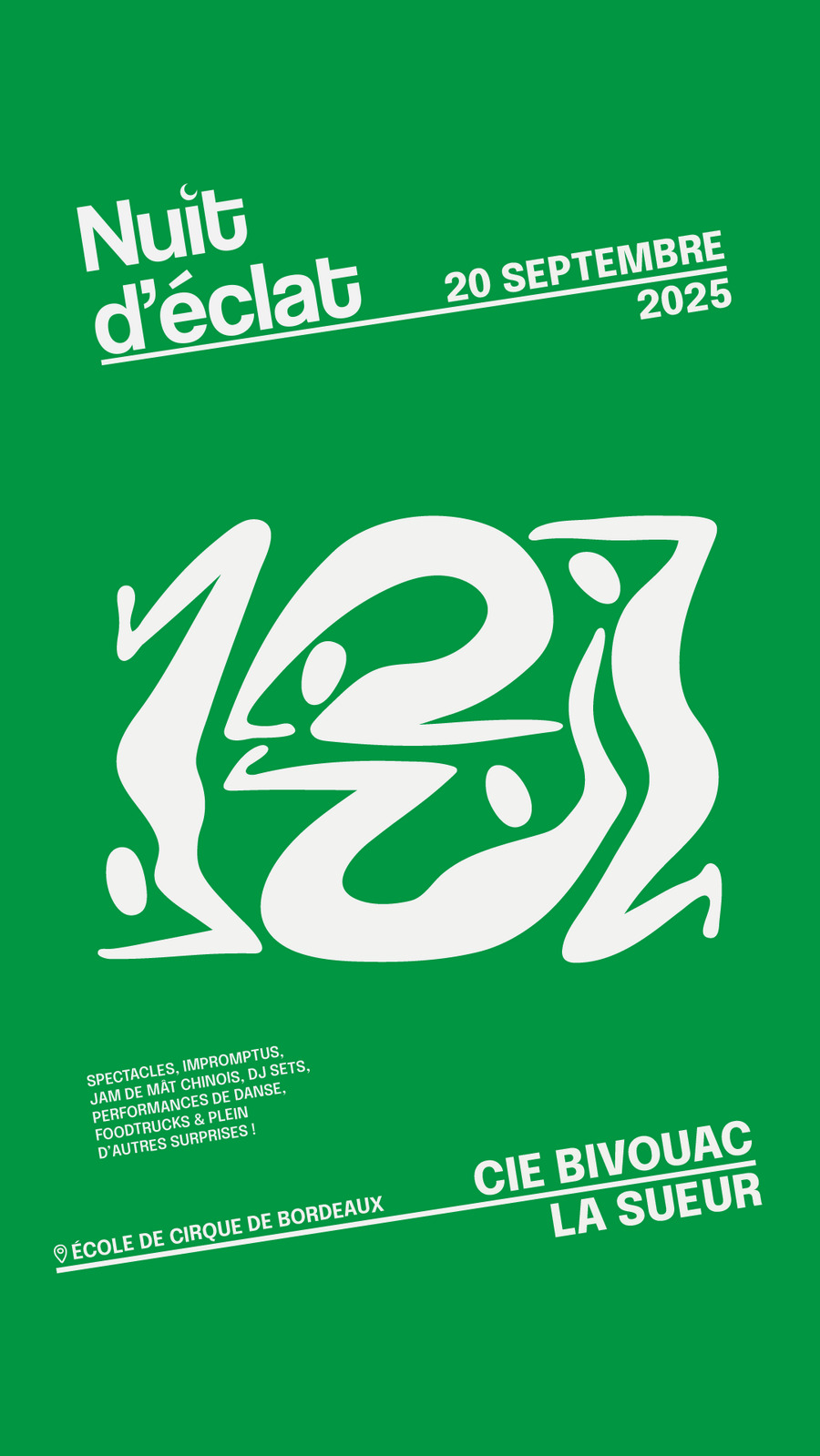 La Compagnie Bivouac et le Collectif La Sueur invitent les bordelais.e.s (et curieux.ses venu.e.s d'ailleurs) à vivre une soirée festive et conviviale où s'enchaînent spectacles, impromptus artistiques, jam de mât chinois, DJ sets, ateliers cirque, cartomancies et bien d’autres belles choses.