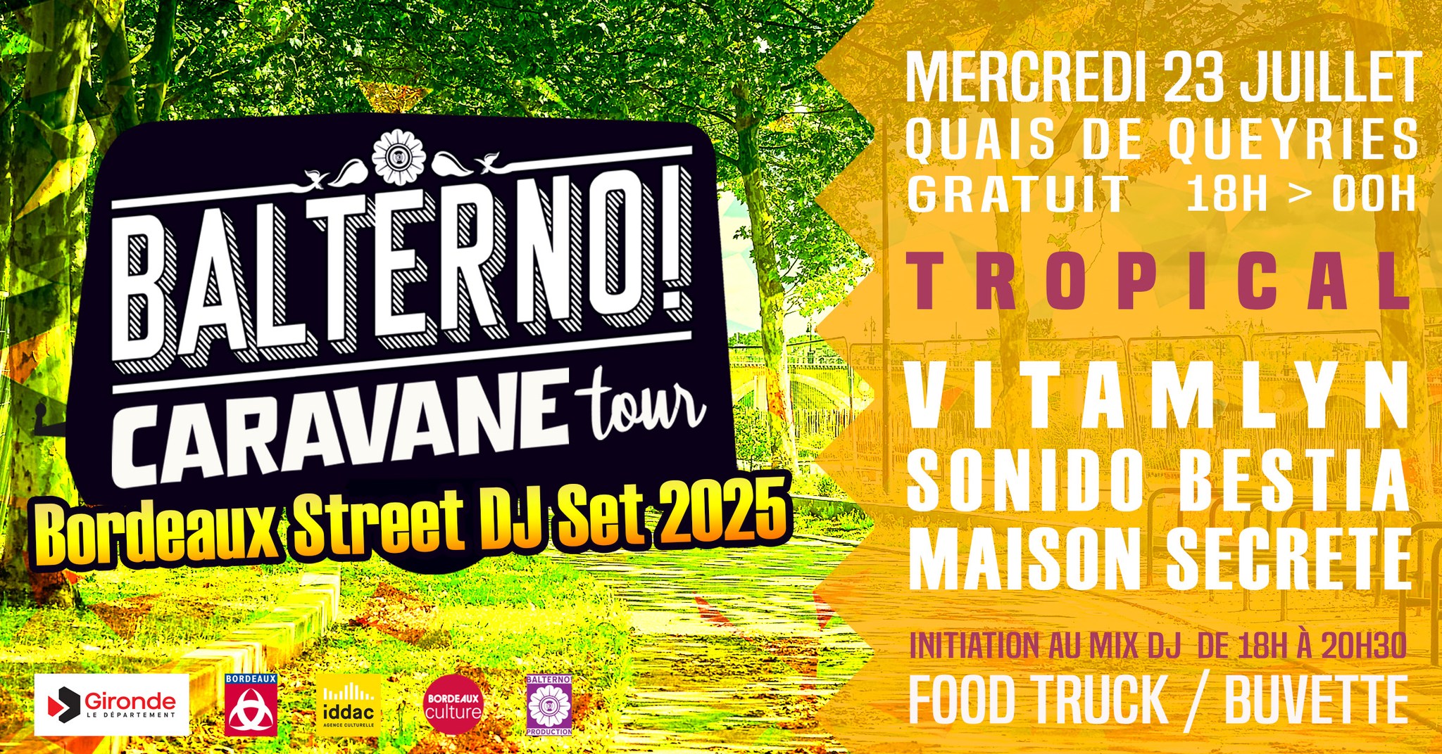 En avant gout du Festival BALTERNO! fin août à Bègles, l'équipe de Balterno t'invite à une série de 5 bals en caravane sound-system dans 5 quartiers de Bordeaux de mai à juillet!