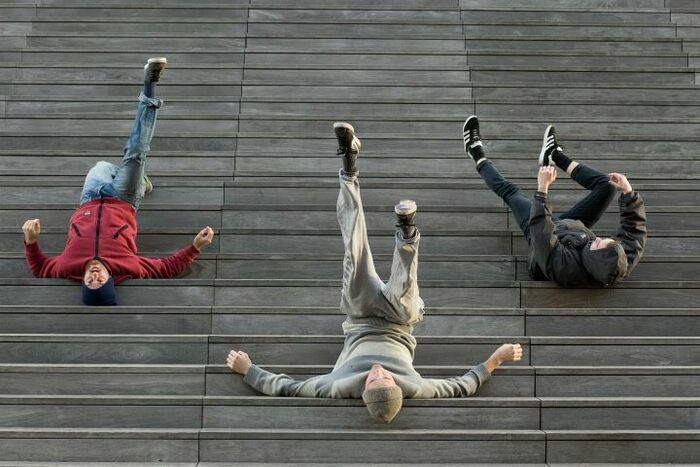 Deux jeunes hommes tiennent la dalle. Ou plutôt un escalier. Qu’ils arpentent, dévalent, avalent. Qui sont-ils ? Deux danseurs, à la fois mimes et acrobates, la tchatche en bandoulière, qui prennent les marches comme tremplin pour propulser leurs corps énergiques et leurs pensées fulgurantes. Proche d’eux un musicien, qui joue en live et complète leur bande. Ces artistes à peine trentenaires agitent le portrait d’une jeunesse urbaine : celle de la zone, du béton, des p’tits boulots, de l’ennui, des excès, des rêves en grand. Mattia Maggi et Tom Verschueren – que certains ont pu découvrir dans les pièces de la metteuse en scène Fanny de Chaillé – sont confondants de justesse, d’audace et de prouesses. Ça carbure à la vitalité, l’élégance et la poésie.