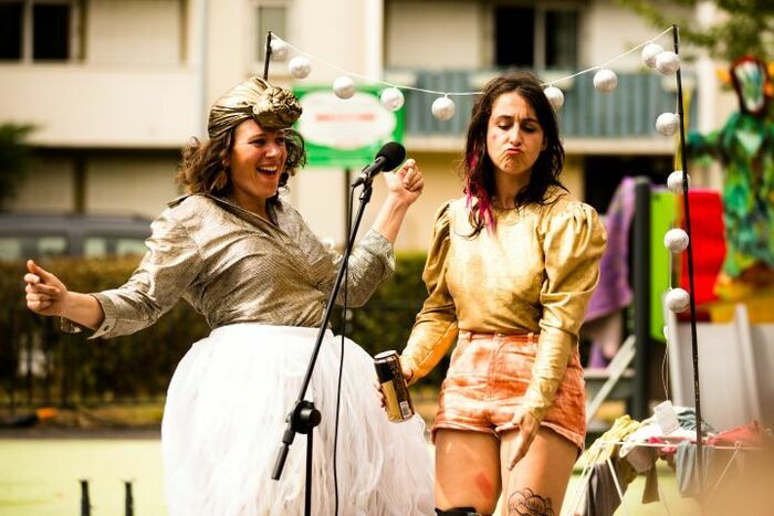 De et avec Fanny Honoré et Nadège Rossato • Dramaturgie, mise en scène : Fanny Honoré • Scénographie, construction, costumes : Nadège Rossato • Regard extérieur : Louise Tardif • Diffusion : Dominique Strée • Production, administration : La Petite Prod 31 • Photos/vidéos : Frédéric Morel • Création playback : Yann Honoré • Formation crêpes : Jackez L’Harridon • Accompagnement artistique : Werner Büchler