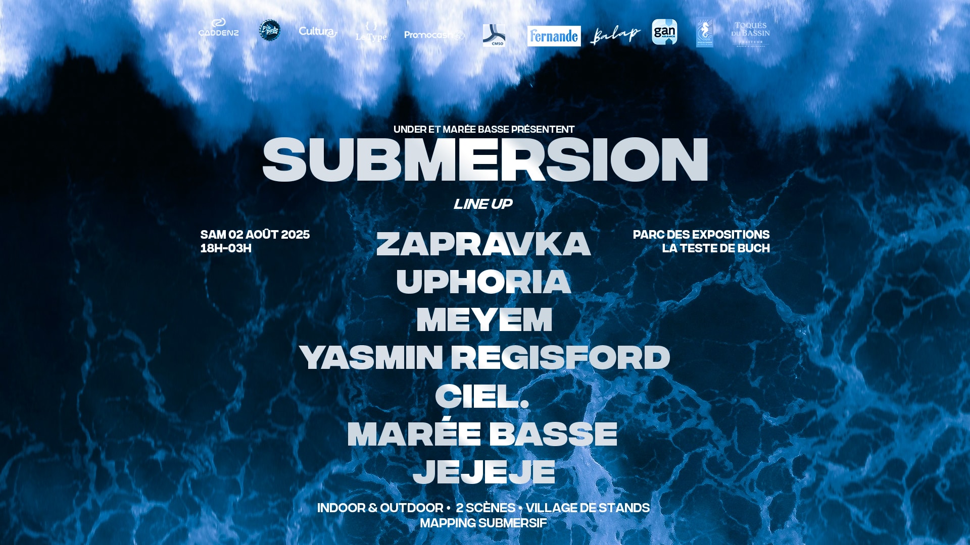 𝗦𝗨𝗕𝗠𝗘𝗥𝗦𝗜𝗢𝗡, c’est l’expérience électronique de l’été, un voyage immersif entre terre et mer, basses et lumières.