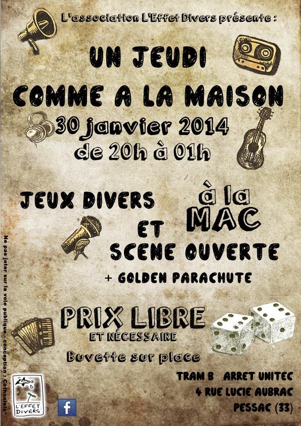 à la MAC (4, rue Lucie Aubrac 33600 Pessac / Tram B Arrêt Unitec)