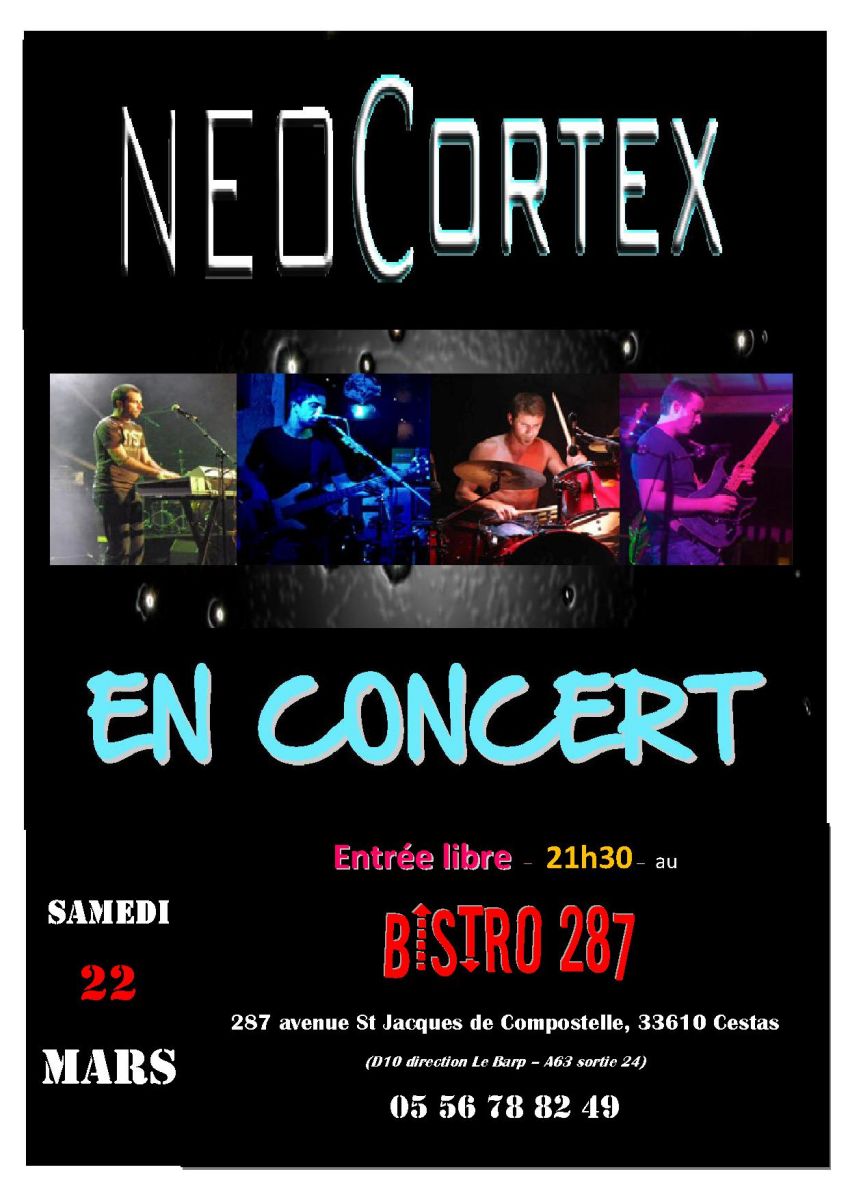 Le groupe NeocoRtex (de Brive°)vous propose un répertoire de variétés françaises et internationales d’une grande diversité musicales (Muse, Coldplay, Jason Mraz, Charliue Winston, Ben Harper, Jack Johnson, Radiohead, Counting Crows, Toto, Queen, Guns N Roses, Bob Dylan, Mathieu Chedid, Tété, Cali, Luke, alliant un monde acoustique léger, intimiste et festif, à un monde électrique dynamique, plus rock, séduisant et varié, réunissant un large public tout âge confondu à ses concerts.
