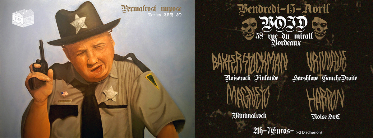 Ces six joyeux drilles ont enregistré un split ensemble : www.poutragerecords.org/index.php/fr/catalogue/120-pou-010-harpon-baxter-stockman