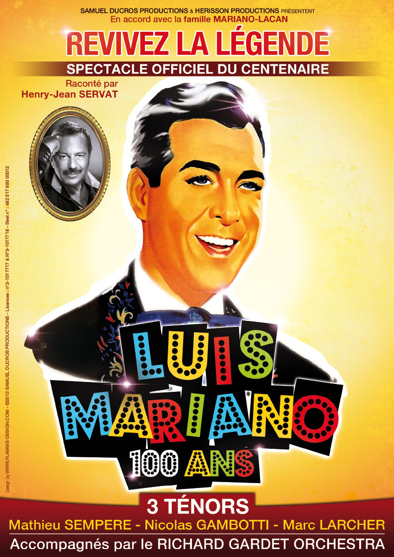 Spectacle officiel du centenaire de Luis MARIANO qui réunit trois jeunes ténors : Mathieu Sempéré, Nicolas Gambotti, Marc Larcher et en maître de cérémonie Henry-Jean Servat.