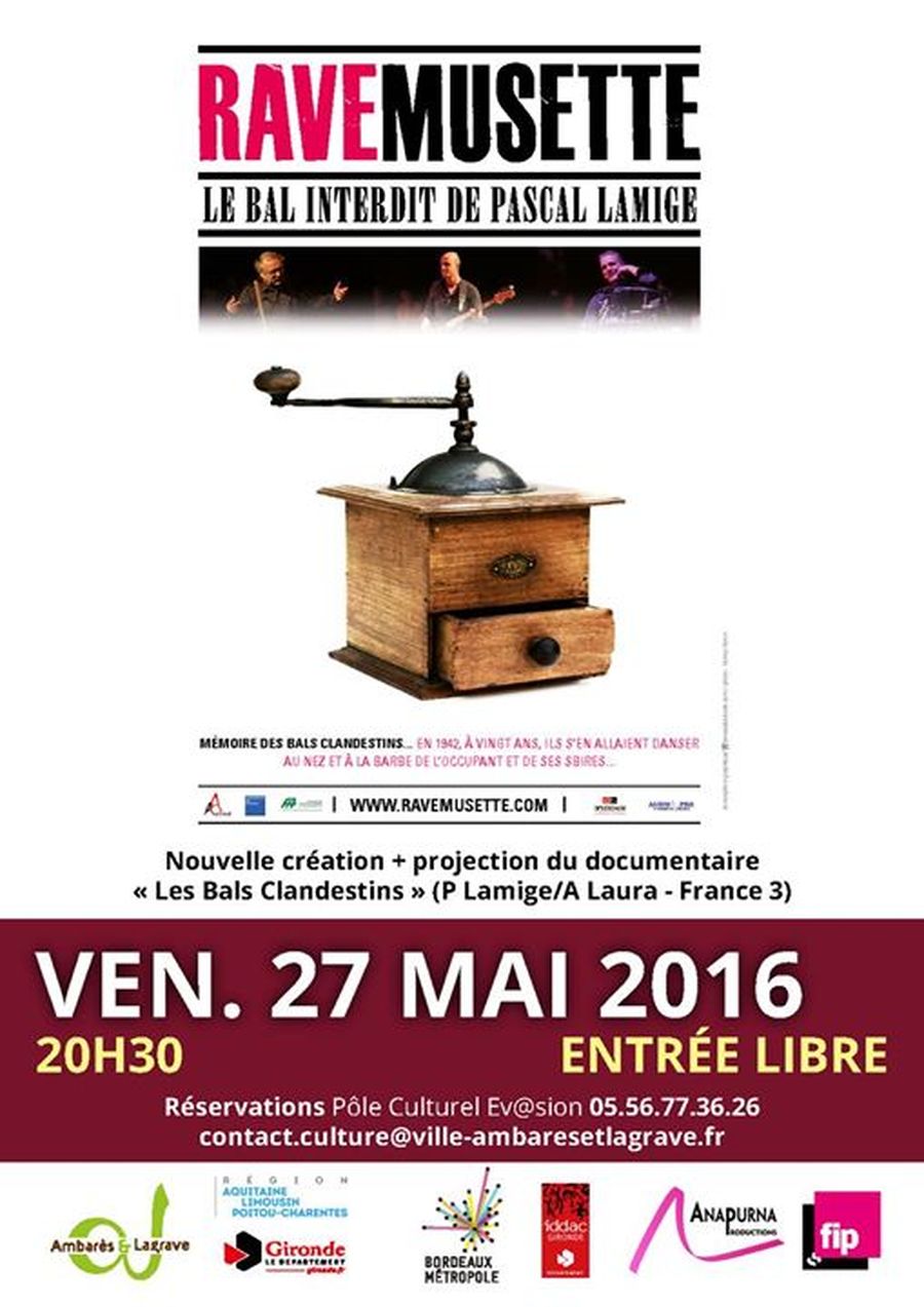 Artiste et agitateur scénique, l’accordéoniste Pascal Lamige trace son chemin depuis de nombreuses années en s’affranchissant des frontières stylistiques (citons Le Baron de Gouttière, Duo du Pavé, Very Big Small Orchestra ou encore des collaborations avec Bernard Lubat ou Denis Barthe). Dans son univers musical, « Rave musette, le bal interdit » tient une place particulière. Un projet atypique, unique, mêlant témoignages, vidéos et musique. Une création aux frontières de l’Histoire qui explore l’univers des « bals clandestins » qui se tenaient sous l’Occupation, espaces de vie envers et contre tout et de résistance à l’occupant. Depuis plus d’une décennie, Pascal Lamige sillonne inlassablement les routes de l’Hexagone en récoltant les souvenirs et en mettant à jour de nouveaux bals. Un projet colossal et profondément humain qui a fait l’objet d’un documentaire diffusé sur France 3 le 9 mai 2016. Pascal Lamige propose une réécriture totale de « Rave Musette » et une nouvelle scénographie, fruit d’une résidence au Pôle Culturel Ev@sion. L'occasion de redécouvrir et d'échanger autour de ce projet, le temps d'une soirée.