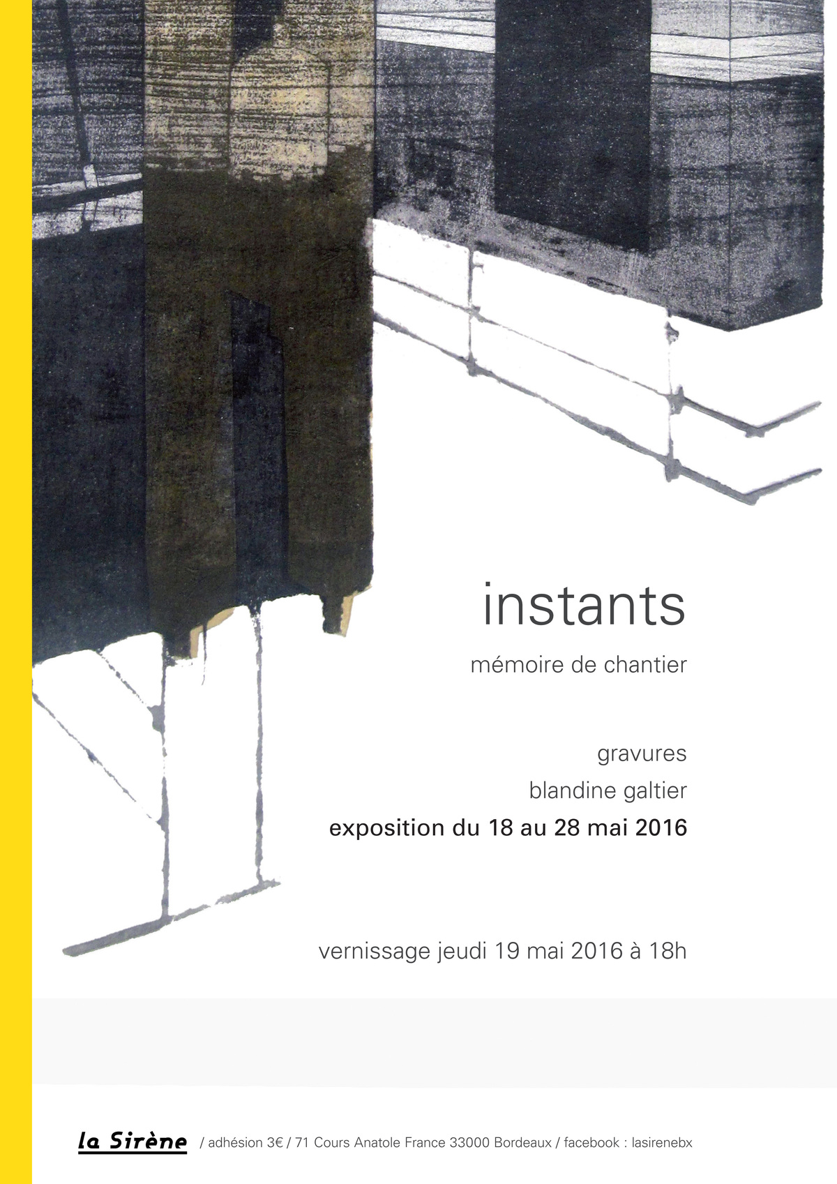 Vernissage de l'exposition "instants" de Blandine Galtier, artiste graveur, jeudi 19 mai à 18h