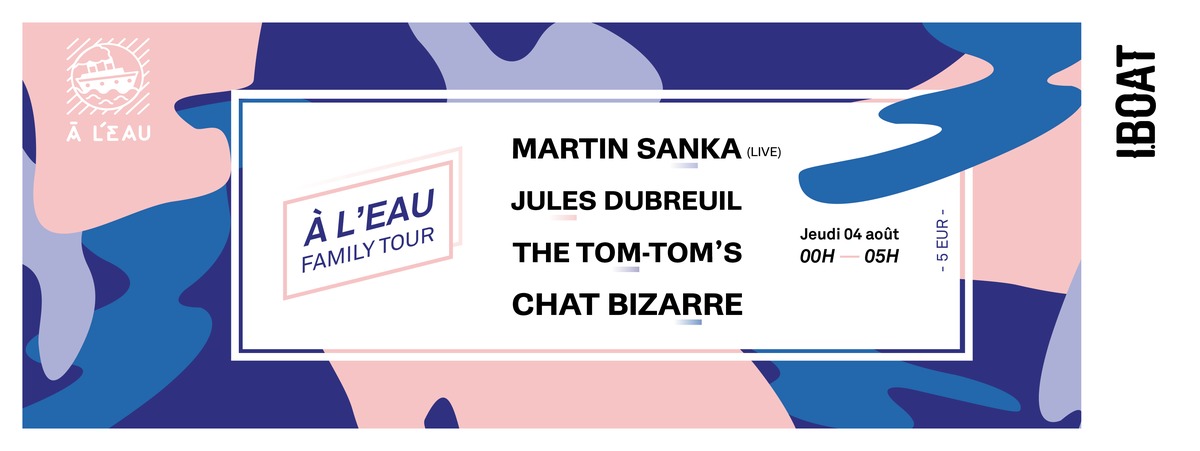 Capitaines et marins d’eaux douces, embarquez à l’IBOAT le jeudi 04 août avec Martin Sanka (live), Jules Dubreuil, The Tom-Tom's & Chat Bizarre.