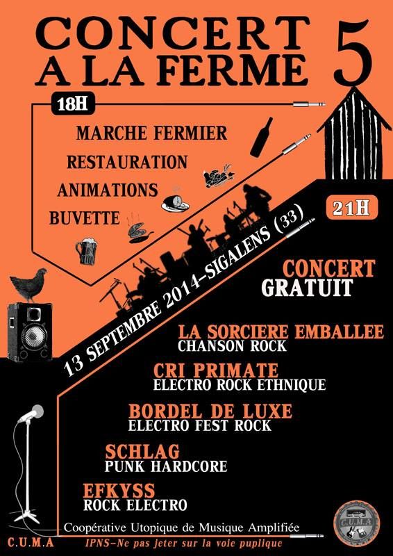 CONCERT A LA FERME Avec Cri primate + Bordel de luxe + Schlag: + Efkyss