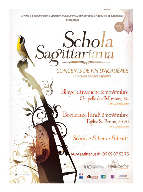 La Schola Sagittariana est un stage d’apprentissage et de perfectionnement des techniques d’interprétation de haut niveau dispensées par Michel Laplénie (voix et direction musicale) et Emmanuel Mandrin (organiste continuiste). Elle s’adresse aux jeunes chanteurs et instrumentistes professionnels ou en cours de professionnalisation.