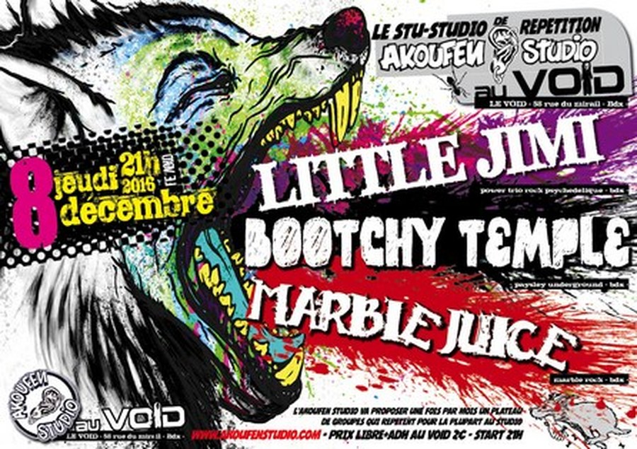 Akoufen Studio a le plaisir d'organiser son premier concert hors ses murs : au VOID // BDX, avec trois groupes du studio bien sur :