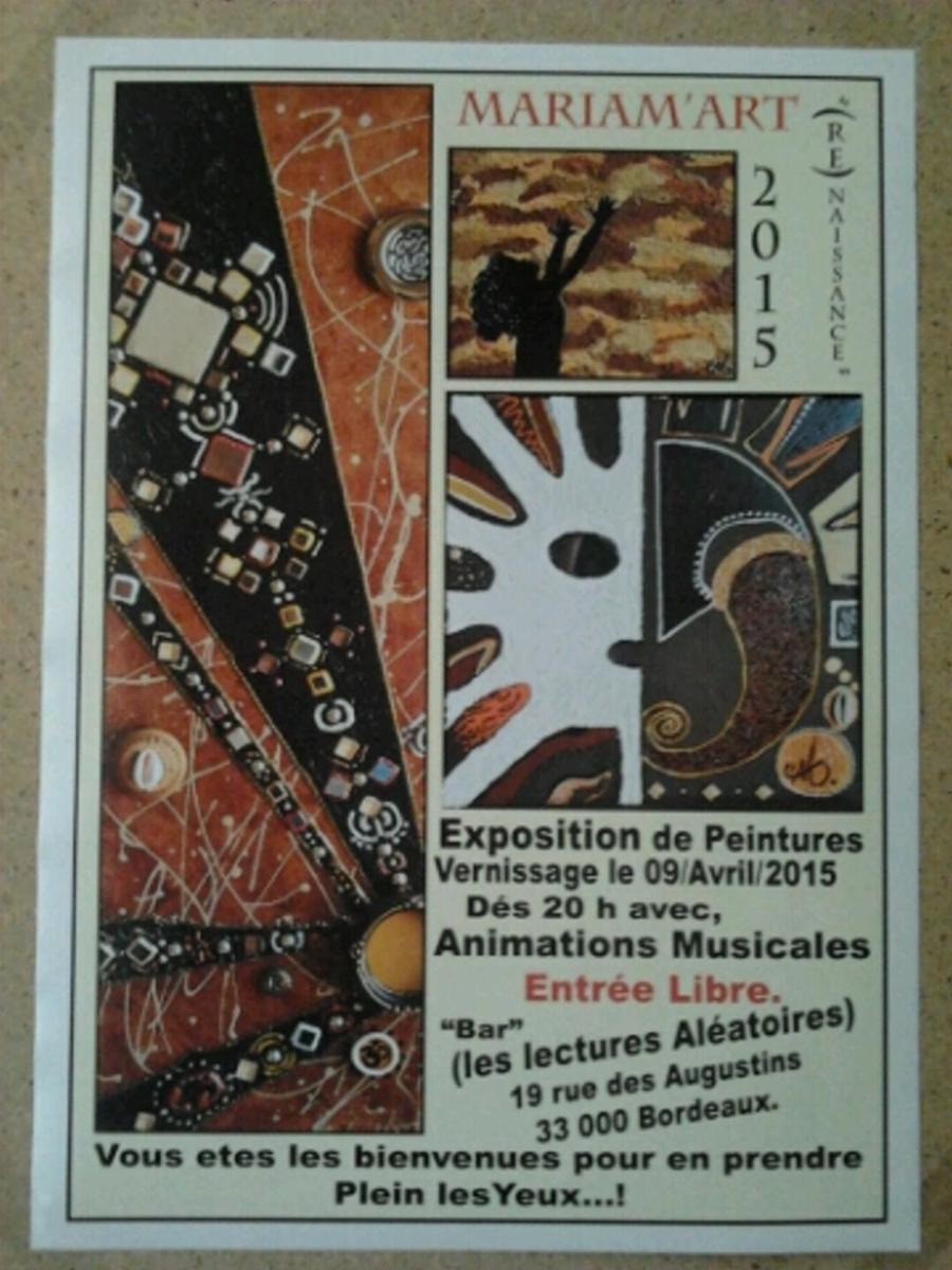 Vernissage le 09 Avril 2015 dès 19h30 avec accompagnement en accoustique de Pierroots