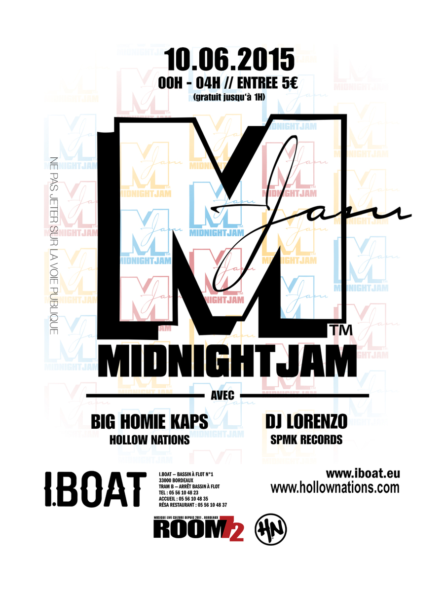 Midnight Jam, c'est le retour des soirées Hip-Hop d'excellence, avec des DJ et artistes qui s'appliquent à vous faire découvrir et redécouvrir les saveurs du son urbain, des 80's à nos jours. Pour suivre à cette second édition à l'I.Boat en Avril dernier avec Big Homie Kaps, Dj Steady & Dj Lorenzo, les Midnight Jam reviennent pour une soirée entièrement consacrée à la genèse de la culture hip-hop qui à puisez son son dans les musiques électroniques, Funk, Soul. Trois DJs Très prometteurs viendront à l’abordage de l'Iboat avec des sets retraçant les prémisses de la musique Hip-Hop/Rap/Break Beats. Une Midnight Jam placée sous de la plus pure vibe underground de nos jours.