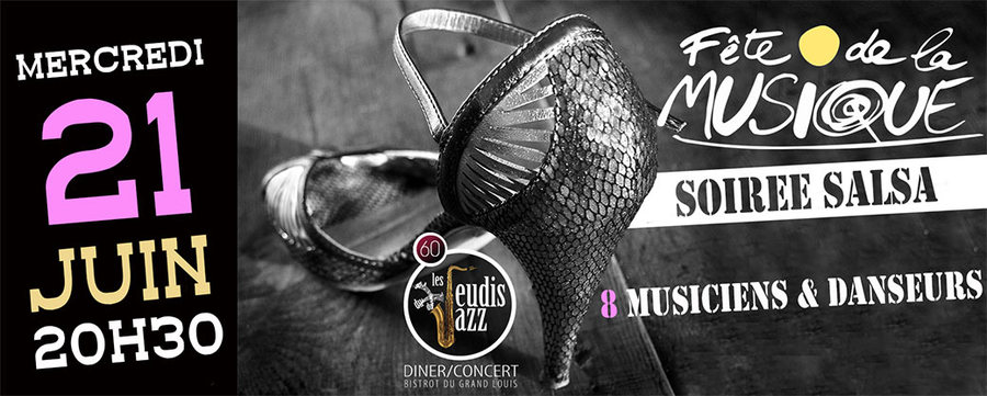 FETE DE LA MUSIQUE – CONCERT SALSA & DEMONSTRATION DE DANSE en dîner/concert au GRAND LOUIS le mercredi 21 juin 2017, dès 20h30.