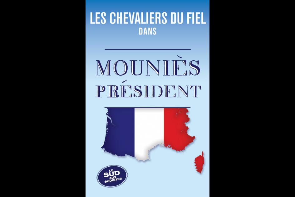C'est le scoop ! La dernière folie des Chevaliers du Fiel ! Jean-Pierre Mouniès, coiffeur pour dames, est officiellement candidat aux élections présidentielles de 2017. Jean-Pierre Mouniès c'est une pensée, une philosophie et surtout un programme ! Avec des idées nouvelles comme l'attaque et l'annexion du Pas de la Case pour récupérer la source du Ricard et la création d'un impôt pour les anglais en vacances Mouniès Président c'est un grand gala d'1h30 avec les artistes les plus cinglés du moment, des discours de fond. Après ça, vous ne verrez plus les élections du même il !