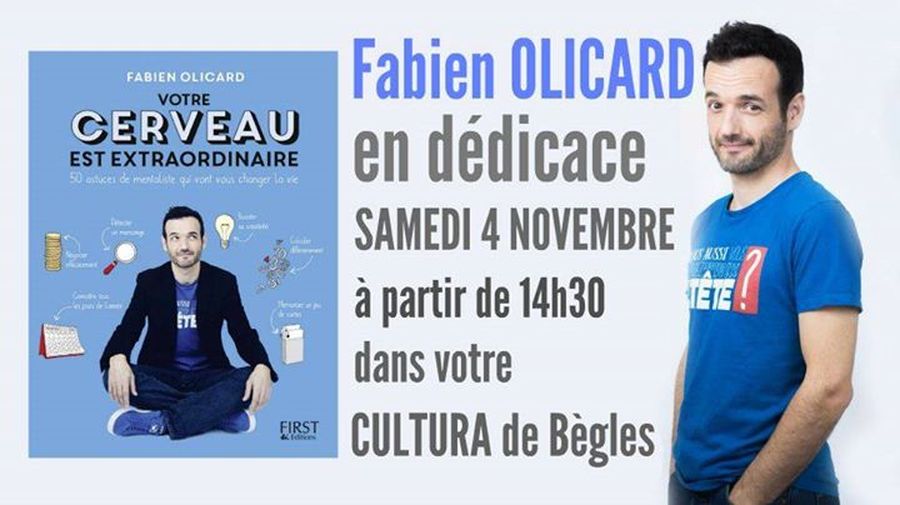 Na manquez pas la venue du mentaliste Fabien Olicard - dans notre magasin le Samedi 4 Novembre à partir de 14h30.
