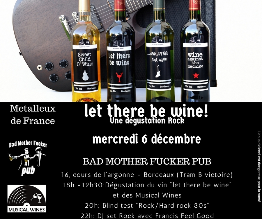 A l’occasion du lancement de la nouvelle bouteille Musical Wines, Musical Wines, le Bad Mother Fucker Pub et Metalleux de France présentent : La soirée « Let There be Wine »