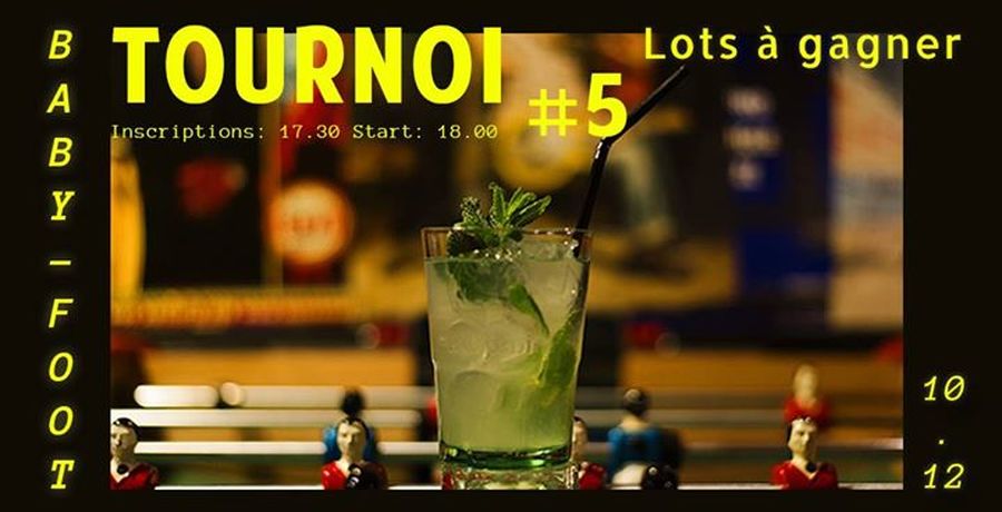 Suite au succès des premiers tournois, on se retrouvera désormais tous les mois pour ce tournoi. Deviens le champion de la Tencha, le roi des gamelles, l'as du demi. Tournoi de baby-foot en 2 contre 2, inscriptions gratuites à 17h30 au bar, début du tournoi à 18h. Champions mon frère!
