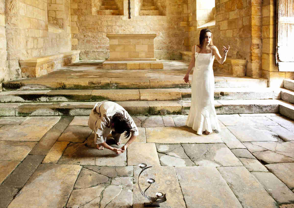 Autour d'une oeuvre plastique, nappe enfouie exhumée reconstruite, corps et souffle composent un récit du quotidien, parlant du lien orient–occident et retraçant l'histoire du chant sacré depuis le chant modal jusqu'à la musique tonale.