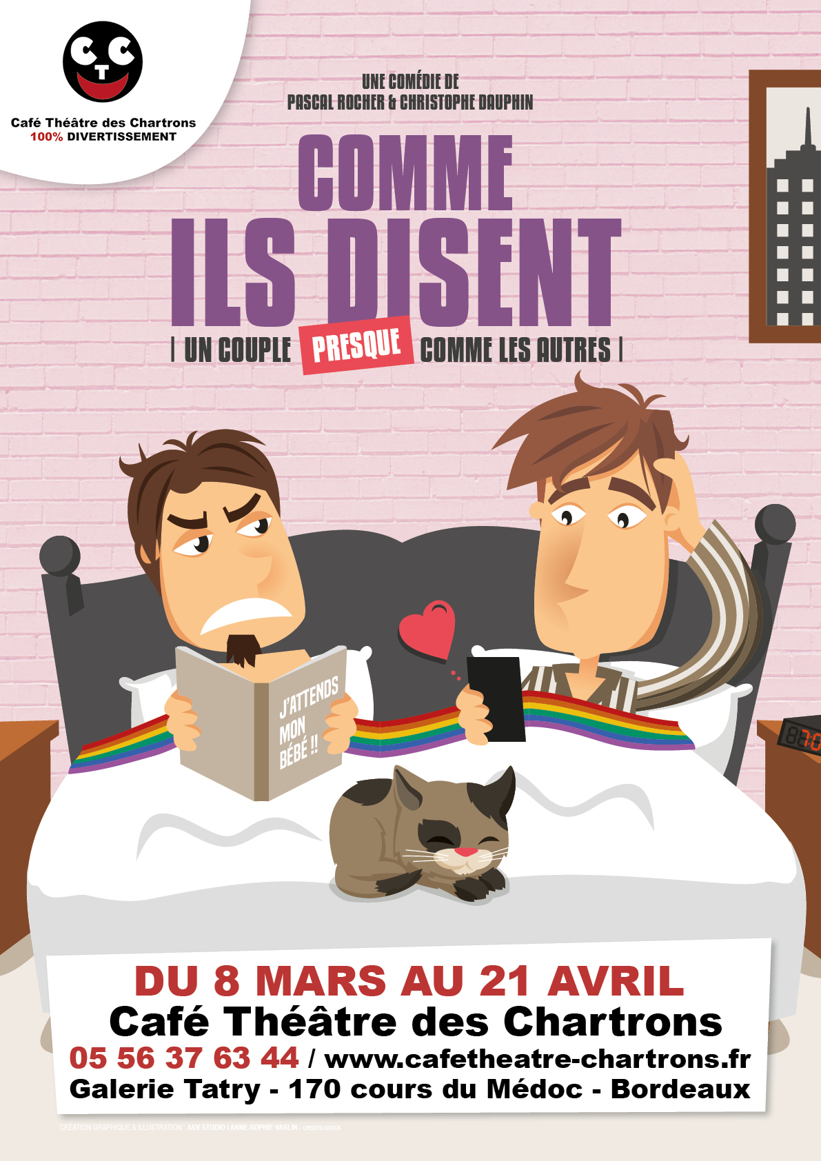Bel hymne à la tolérance, dans cette pièce on rit beaucoup du couple, tout le monde se reconnaît et on finit par oublier que ce sont deux « homos », comme ils disent !