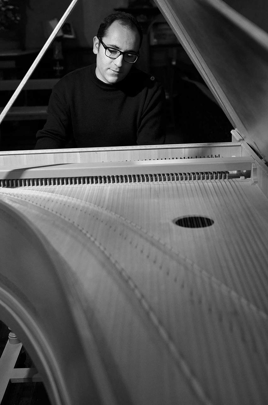 Pincer les cordes mais avec des touches, tel est le rôle du claveciniste. Tendre l'oreille pour entendre chacun des becs mordre la corde et lancer le son à travers cette grande caisse de résonance. Musiques d'hier et aujourd'hui se rencontrent sur les deux claviers de cet instrument.