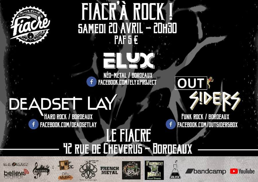 Nous on sait !!! Tu viens étancher ta soif de bonnes bières, de bon vins et autre spiritueux magiques en ville à Le Fiacre, et puis tu descends dans la cave dès 20h30 pour étancher ta soif de Rock et te défouler au son de 2 groupes aux énergies très très communicatives !